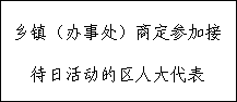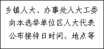 (一)接待日前,各乡镇人大、办事处人大工委将参加接待的主任会议成员及分管工作、接待时间、地点等向本选举单位的区人大代表公布。区人大常委会代表工委与乡镇人大、办事处人大工委商定参加接待活动的代表名单,注重邀请在基层一线工作的代表。同时,根据会议议题邀请在区的省、市人大代表参加。