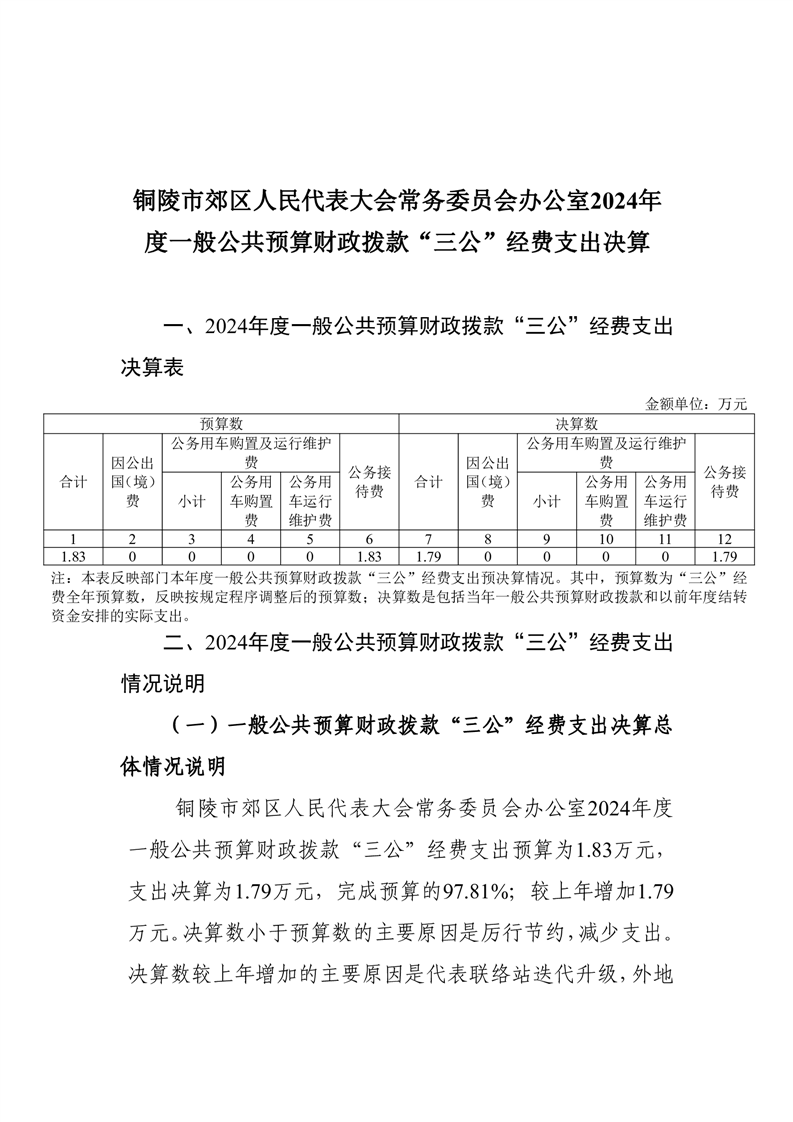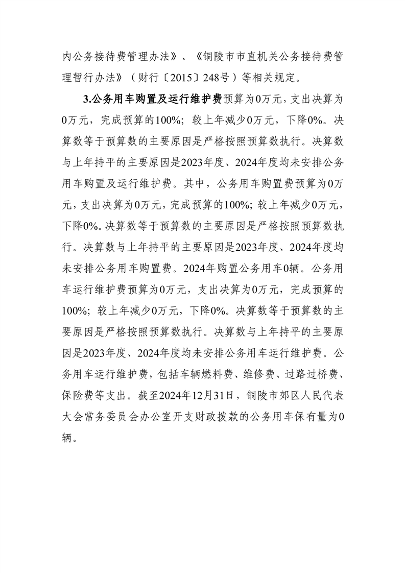 铜陵市郊区人民代表大会常务委员会办公室2024年度一般公共预算财政拨款“三公”经费支出决算